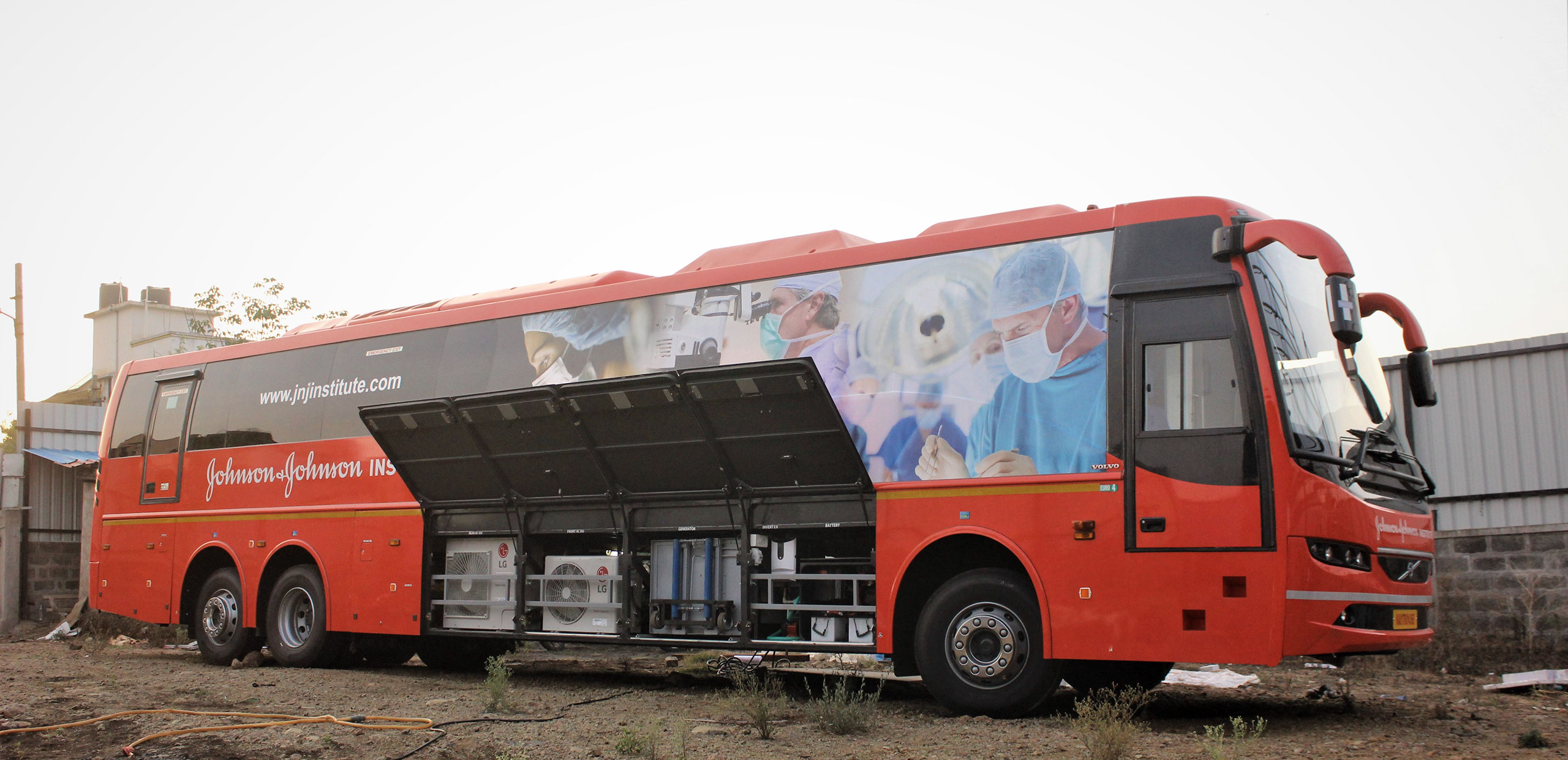 DG SET: 23 KVA DG set with anti-vibration pads and sound less canopy is provided to provide electrical power to the Training Van. To load and unload the DG set in the vehicle lower dickey, hydraulic trolley with four cylinders and wheels, is provided.