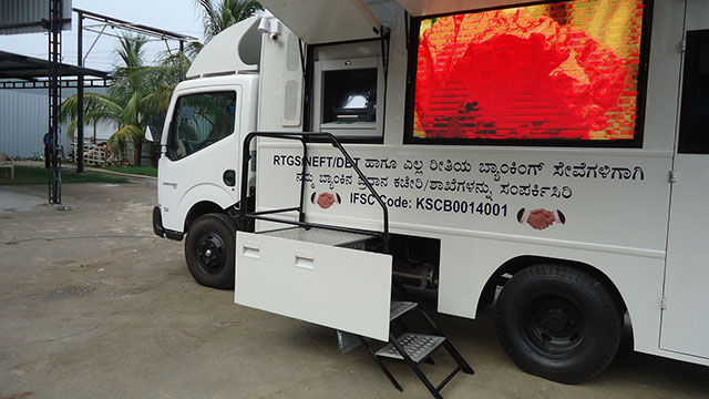 Mobile ATM Van/ buses are used to provide ATM services in rural, & remote areas by Banks to help people get access to money when regular ATM boots are not available . They are also used by banks to display various schemes, products services of bank for marketing & educating customers, many of our variants also have features like bank account opening , loan application and various other schemes provided by bank present in them