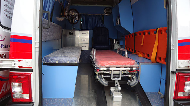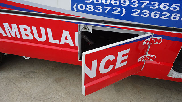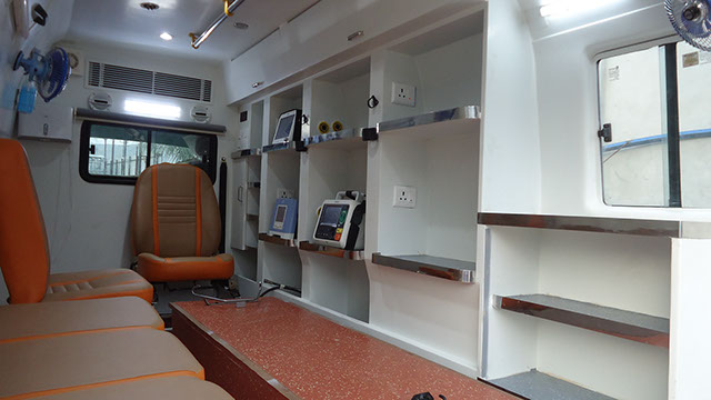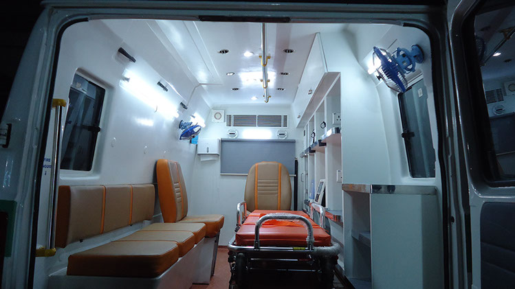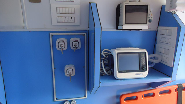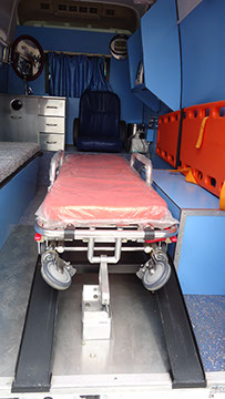 ELECTRICAL: All ISI Mark PVC insulated, flame retardant cables of Grade IS 694 are used for all electrical wiring with PVC sleeve and PVE flexible pipe covered on, with rubber grommets at metal parts for safety. Also circuit breakers MCB’s and fuses are provided to control the high voltage. Also sequential Bar light with PA system is provided along with flasher lights nine numbers around the ambulance.